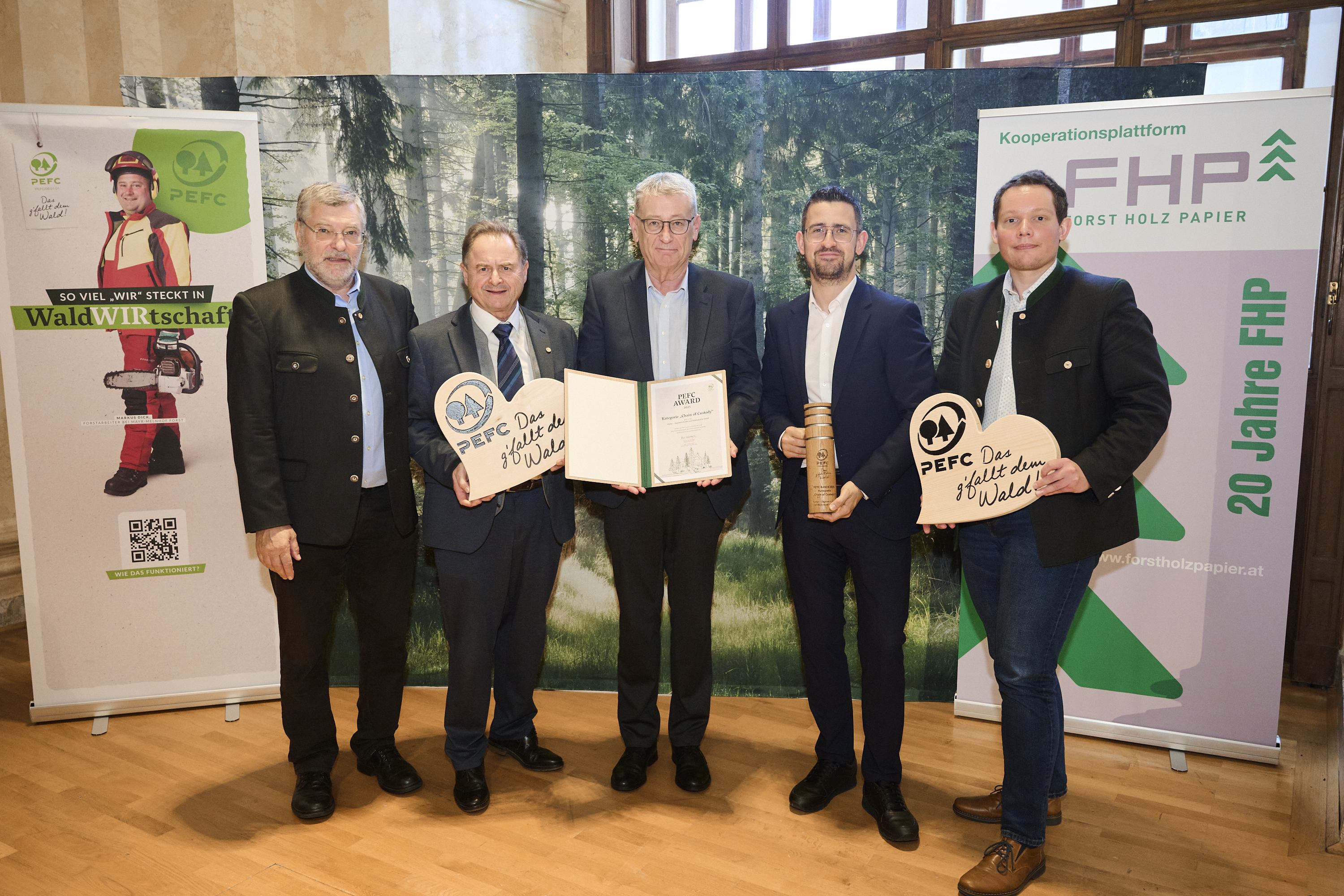 Im Rahmen der Österreichischen Holzgespräche wurden die PEFC-Awards 2025 in den Kategorien Wald, ZÖFU, Chain of Custody, Persönlichkeit und Promotion vergeben. Die Auszeichnungen würdigen herausragende Leistungen und das Engagement der Preisträger für die Förderung einer nachhaltigen Forstwirtschaft sowie die Verwendung von PEFC-zertifizierten Produkten. Ziel der PEFC-Awards ist es, innovative Ansätze und Best-Practice-Beispiele sichtbar zu machen und die Bedeutung nachhaltiger Waldbewirtschaftung zu unterstreichen.