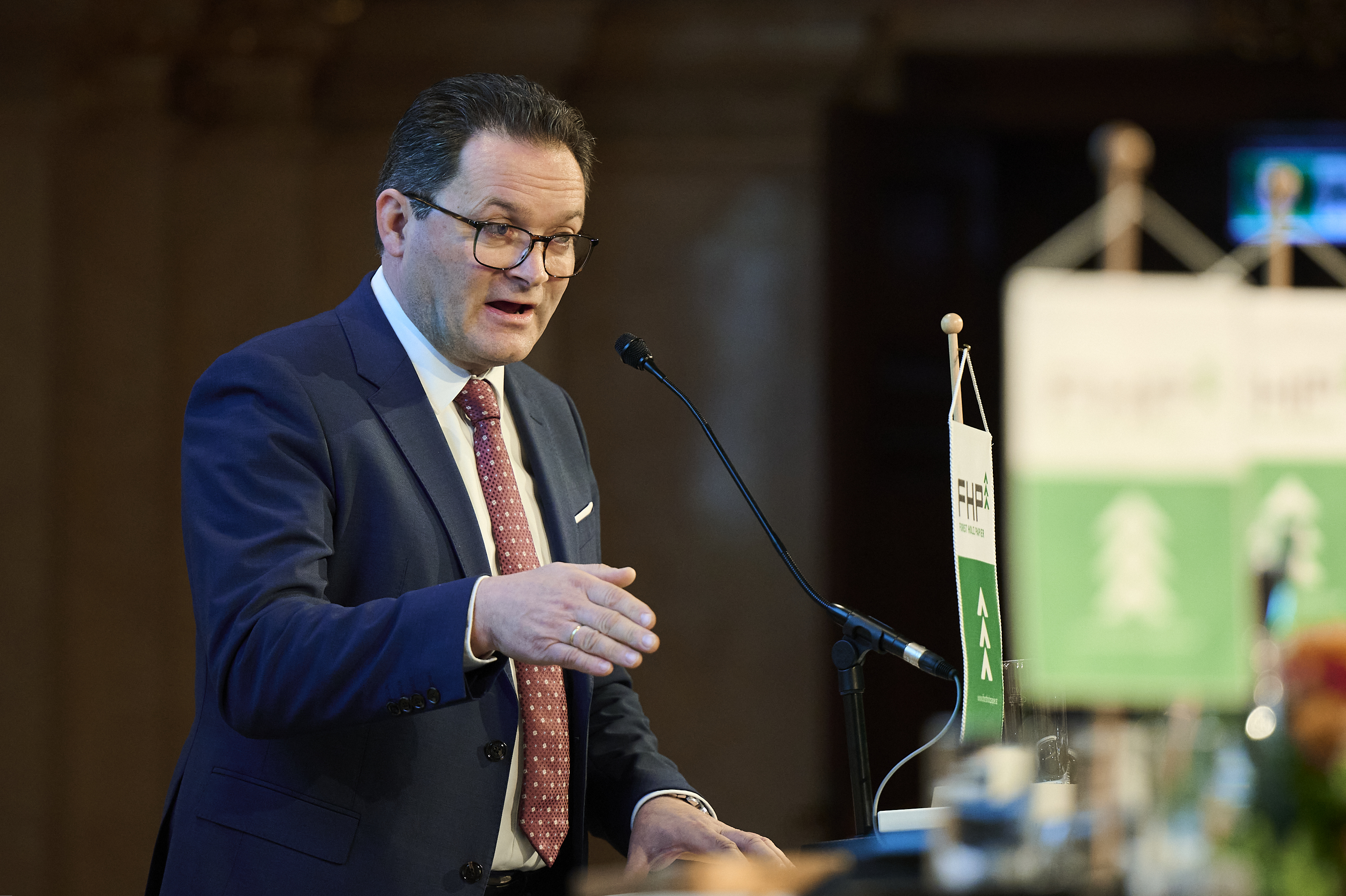 Zum Abschluss der Veranstaltung stand der Vorsitzwechsel an der Spitze von FHP im Mittelpunkt. Konrad Mylius, Präsident der Land&Forst Betriebe Österreich, wurde am Vortag, dem 12. November 2025, vom FHP-Exekutivausschuss zum neuen Vorsitzenden für die Periode 2026/27 gewählt. Er folgt Erich Wiesner, der diese Funktion seit 2022 innehatte. Markus Schmölzer, Obmann-Stellvertreter des Fachverbands der Holzindustrie Österreich und Vorsitzender der Sägeindustrie Österreich, wurde zum neuen stellvertretenden FHP-Vorsitzenden gewählt.