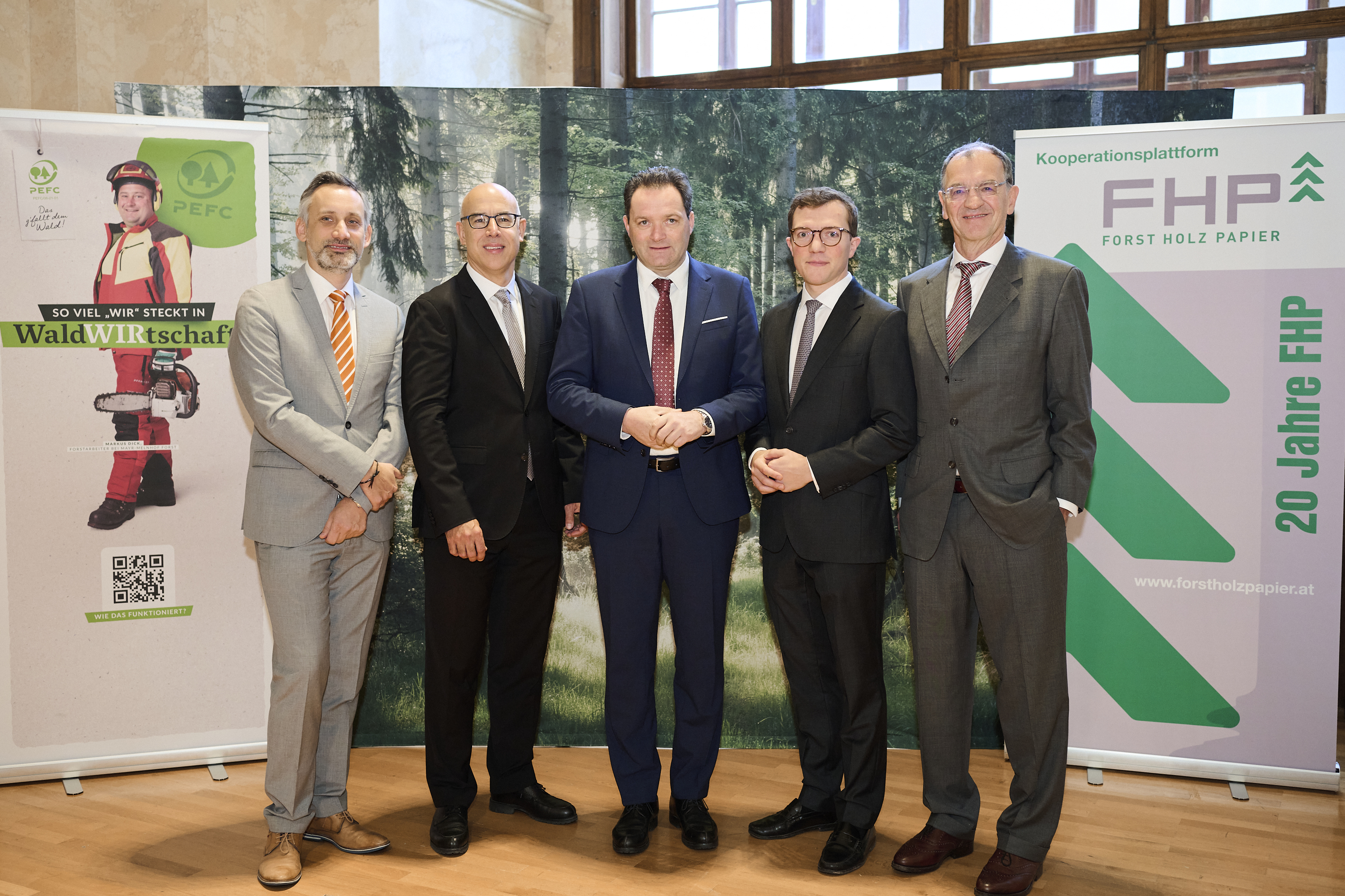 Die Kooperationsplattform Forst Holz Papier (FHP) ist ein europaweit einmaliger Zusammenschluss aller mit dem Roh-, Wert- und Werkstoff Holz tätigen Branchen – von der Urproduktion über die Weiterverarbeitung in der Säge-, Platten- und Papierindustrie bis zum Holzbau und Holzhandel. Rund 300.000 Menschen beziehen in über 172.000 Betrieben in Österreich ihr Einkommen aus dem Werkstoff Holz. Die jährliche Bruttowertschöpfung der gesamten Wertschöpfungskette beträgt rund 27,7 Milliarden Euro und macht die Holzbranche zu einem stabilen und verlässlichen Pfeiler der österreichischen Volkswirtschaft.